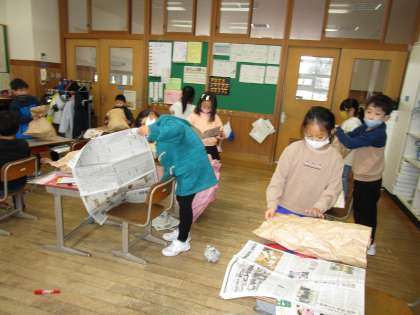 2年生 図画工作「くしゃくしゃ ぎゅっ」