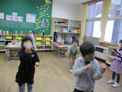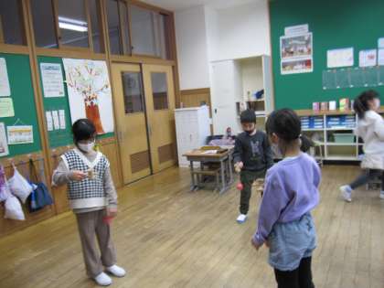 1年生は、生活科の時間に昔の遊びをしました。こまやけん玉、お手玉をしたのですが、なかなかうまくできず、熱中して練習していました。上手にできるように練習を続けます。
