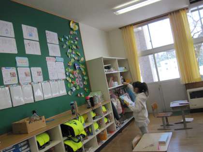 1年生は算数の時間に、大きな数見つけビンゴをしました。学校中の物の数を数えて十の位の数が同じだったら色を塗ることができます。「ピアノの鍵盤は88こあった」「今日長靴で来た人は60人だった」と教室に戻ってきてから盛り上がっていました。