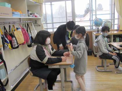 1年生は、6年生に卒業おめでとう集会の招待状メダルを渡しに行きました。明日は、6年生に今までの感謝が伝わるように、出し物を全力でがんばります。