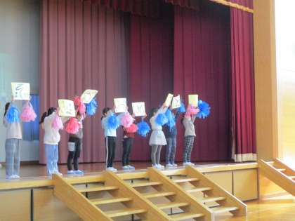1年生は6年生が昔学習発表会で踊ったダンスを披露しました。6年生さんとも一緒に踊ることができて嬉しそうでした。入学してから1年生にいつも優しくしてくれた6年生さんに今後も感謝の気持ちをもって生活していきます。