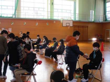 この日に向けて1か月近く準備を進めてきた5年生です。「どうすれば楽しんでもらえるのか」「どんなプレゼントなら気持ちが伝わるのだろう」と常に考えてきました。今日の集会で今まで準備してきたことが形となり、5年生は達成感を味わいました。