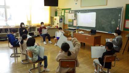 5年生では、卒業おめでとう週間のエンディングイベントを行いました。オンラインをうまく活用しながら、なかよし班ごとに集まって以心伝心ゲームをしました。お題に合わせて6年生が思っていることを在校生が当てるゲームです。全校で触れ合う貴重な機会を子供たちは楽しんでいました。