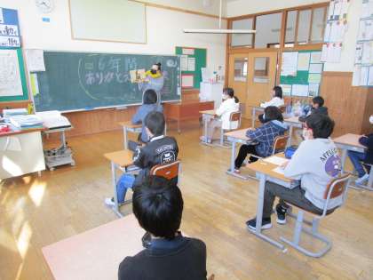 小学校生活最後の読み聞かせでした。6年間、毎週水曜日がずっと楽しみでした。感謝の思いを図書委員が代表して伝えました。