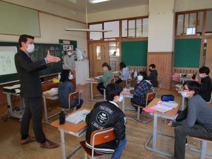 今日はALTとの最後の授業でした。英語を用いたゲームで、1年間の学びの復習をしました。授業の最後には、手紙で感謝の気持ちをを伝え、サプライズでALTの出身国であるアメリカ合衆国の国歌を歌いました。