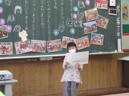 1年生最後の学級活動では入学してからの1年間を振り返り、楽しかったこと、がんばったこと、2年生でがんばりたいことを話しました。1年間9人でたくさんのことに挑戦し、できることが増えました。2年生に進級し、さらにみんなの力がぐんぐん育っていくことを期待しています。