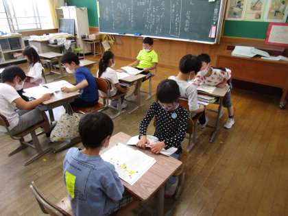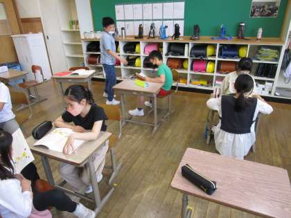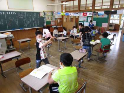 様子を想像しながら詩を読みました。動いたり、強弱を付けたりしながら、音読しています。