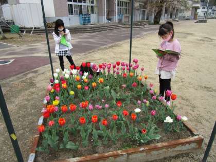 今日は、グラウンドで見付けた春の植物を観察し、スケッチしました。ルーペを使って細かい部分まで観察しました。