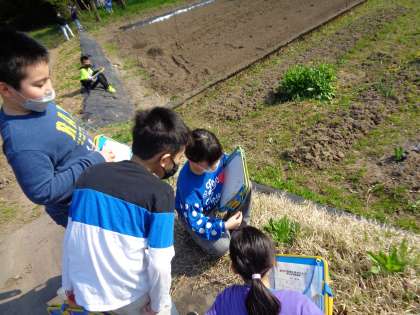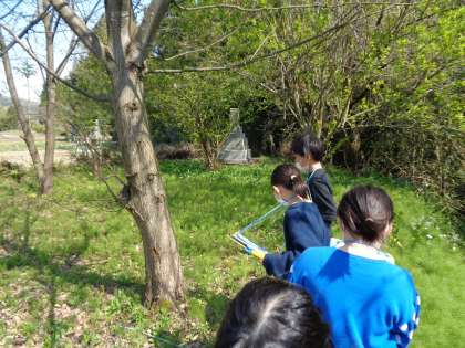 4年生の総合的な学習の時間では、音川の自然について学習していきます。今日は、グラウンドや畑の周りを歩きながら、動植物等の自然を観察しました。たくさんの自然を発見しました。これから体験活動等も通して、音川の自然についてくわしく学習していきます。