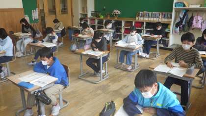 6年生の子供たちは全国一斉に行われる学力学習状況調査に取り組みました。普段よりも文章が長く、資料が多いテストです。子供たちは集中し、一生懸命読み取っていました。