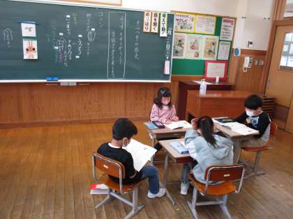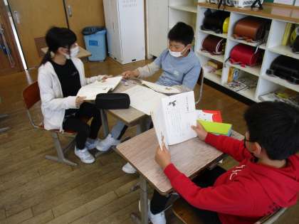 役割を決めて、グループで音読しています。文章やせりふから、まわりの様子を想像したり、気持ちを考えたりしながら読むことができました。