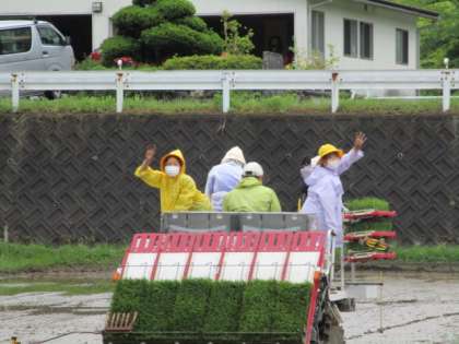 今日、5年生は道島地区で田植え体験をさせていただきました。