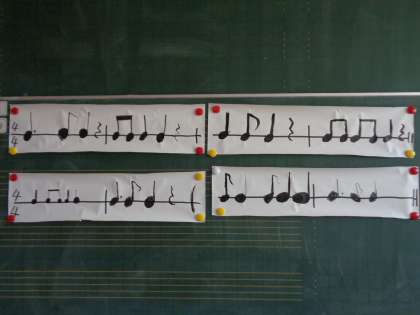 来週は、子供たちが書いた音符を見ながら、リズム学習の続きをします。