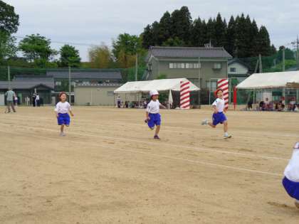小学校に入学して初めての運動会でした。年長児として、先頭に立って活躍した保育所の運動会とは勝手が違ったかも知れませんが、広いグラウンドを力一杯駆け抜ける姿は、とてもたくましく感じました。