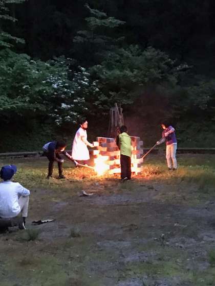 お風呂に入って、さっぱりした後は、キャンプファイヤーです。