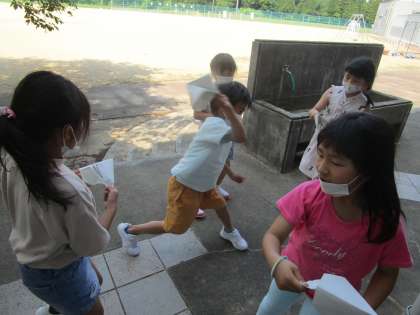 1年生 紙鉄砲あそび(投げる力を付ける?)