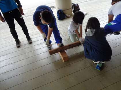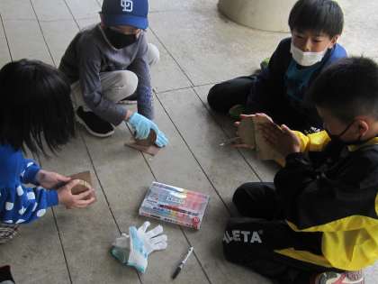 2日目の午後は、コースター作りをしました。木をのこぎりで切るのが難しそうでしたが、楽しく、協力して活動していました。宿泊の思い出の品となりそうです。片付けも自分たちで最後までやりました。