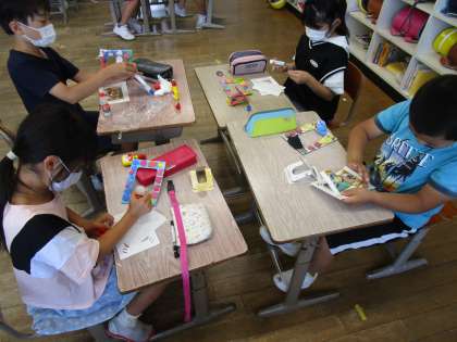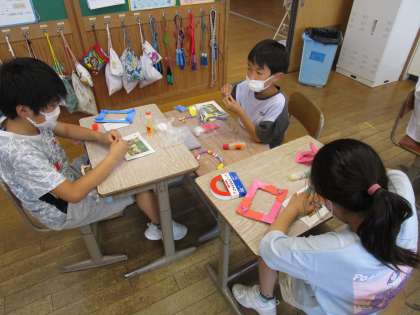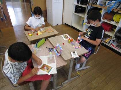 カラー紙粘土を混ぜて色をつくり、写真立てをつくりました。自分のお気に入りの写真を選び、作品を完成させました。