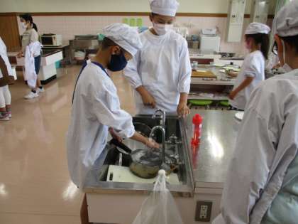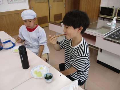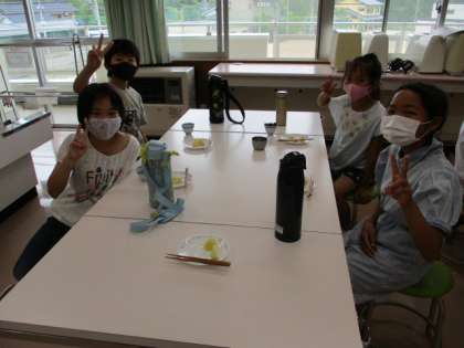 今日は家庭科の時間に「ほうれん草のおひたし」と、「ゆでいも」をつくりました。みんなで協力しながら上手につくり、最後は「おいしい」と言って満足した様子で食べていました。