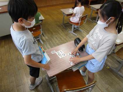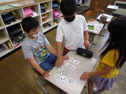 数字カードを用いて、和が1000や10000になる式を考えました。繰り上がりを意識して、答えを導き出しました。