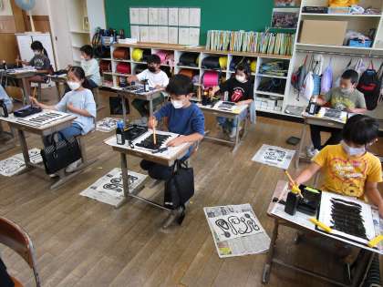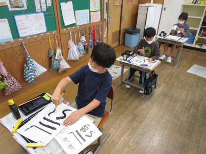 初めての習字でした。書くときのポイントや注意すること等をしっかり意識して書くことができました。次回の書写も楽しみです。