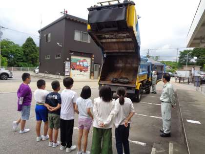 今日は3R推進スクールがありました。3Rについて説明を聞きながら、たくさんメモをとっていました。捨てられているゴミの量や、ゴミ処理にかかる費用が想像以上に多く、びっくりしていました。最後にはゴミ収集車を見せていただきました。収集車の働きや、動きが印象に残ったようです。