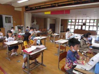リコーダーの学習に取り組んでいます。上手に指を動かしたり、優しく吹くことを意識したりしながらがんばっています。