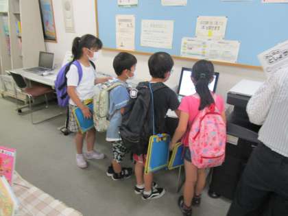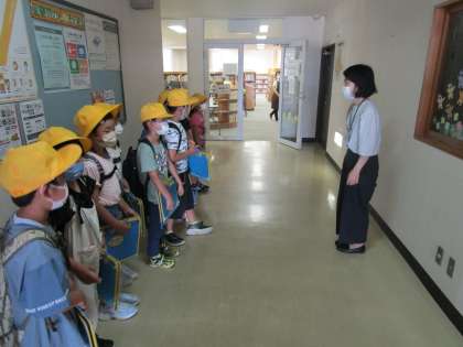 子供たちは、図書館の説明を聞いたり、読み聞かせをしていただいたりしました。その後に実際に本を借りました。