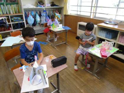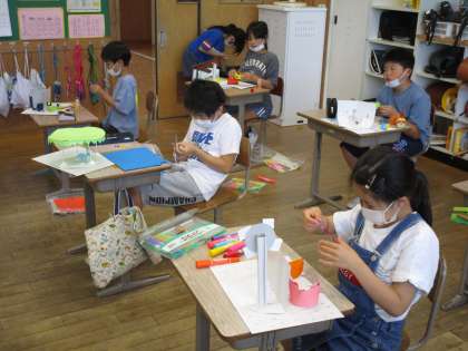 制作の続きをしました。回しながら楽しめる作品となりました。