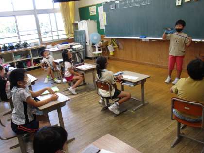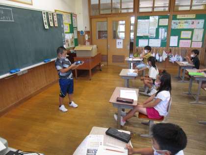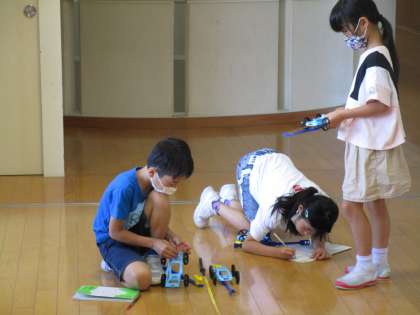 今日はゴムを使って車を動かす実験をしました。より遠くへ動かす方法を話し合った後、対照実験になるように実験方法を考え、グループで協力しながら実験を進めました。
