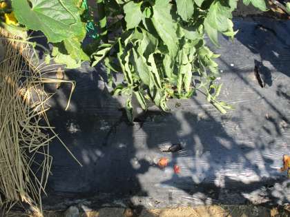 今日の朝、子供たちから事件があると言われ、畑に行くと、もう少しで収穫予定だったトマトが食べれていました。