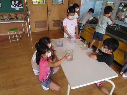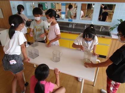 子供たちは、協力しながら、実際にちょうどますに収まることを確認することができました。