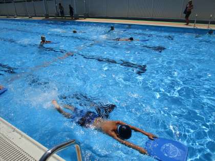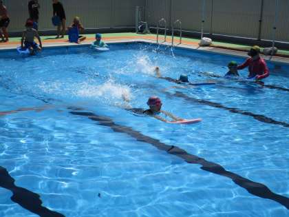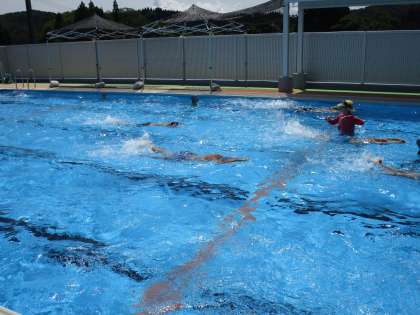 講師の先生より、正しい息継ぎやバタ足、けのびの仕方を教えていただきました。記録会に向けて、自分の泳げる距離を少しでも伸ばそうとがんばっています。