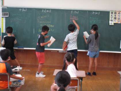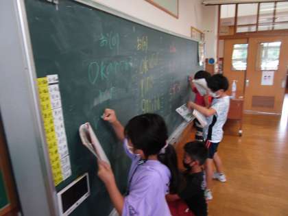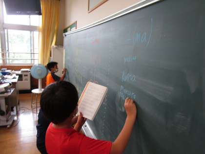 今日はローマ字でしりとりをしました。グループのみんなで力を合わせて、たくさんの単語を見付けてローマ字で書くことができました。