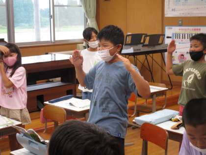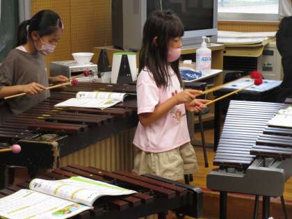 元気いっぱい歌声を響かせました。また、3年生は木琴にチャレンジしています。楽譜をよく見て、演奏することができました。