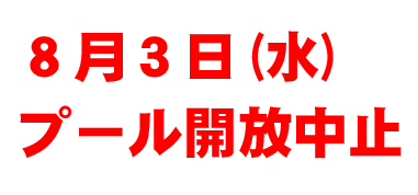 本日、熱中症警戒アラートが発表されています。今後、更に熱中症の危険性が極めて高い気象状況になることが予測されることから、本日のプール開放は中止とします。