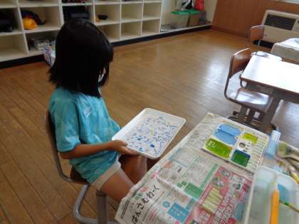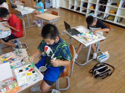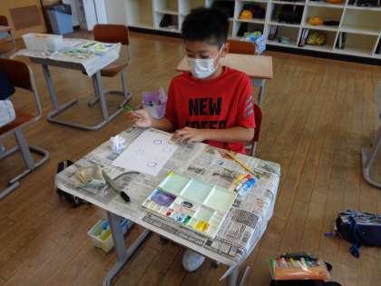 図画工作科で、絵の具を使った学習をしました。スパッタリングやスタンピング等、絵の具を使ってきれいな模様を描けました。子供たちの想像力に驚きです。