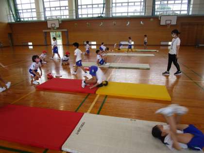 昨日に学んだことを生かして、前転や後転の学習に取り組みました。どんどんできることが増えてきています。