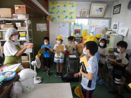子供たちは、大かぶの種のまき方や、これからの育て方について調べています。今日は、調べて分からなかったことや、疑問点を音川加工の職員の方に質問しに行きました。明日はいよいよ種をまきます。