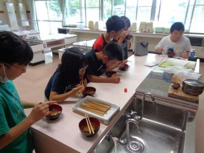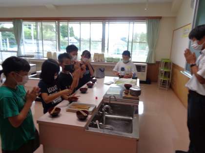 今日の理科の時間では、今まで育ててきたオクラを使って、味噌汁を作りました。収穫したオクラは1本。1本のオクラ味噌汁、みんなでおいしくいただきました。