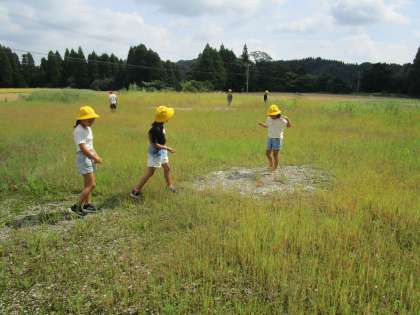 子供たちは、生き物が逃げるので捕まえることが難しそうでした。