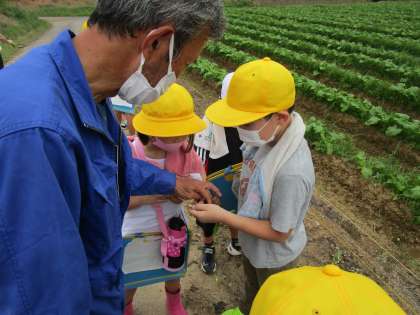 大安に選ばれている大かぶをつくっている大かぶ農家の方を訪ね、インタビューしたり畑を見学したりしました。大かぶづくりへの思いや、つくり方の工夫等、様々なことを教えていただきました。