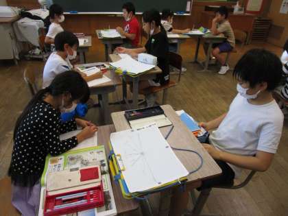 昨日実験した結果を基に、太陽とかげの関係について考えました。太陽の位置や方位、高さによって、かげのできる向きや長さが変わることを理解することができました。