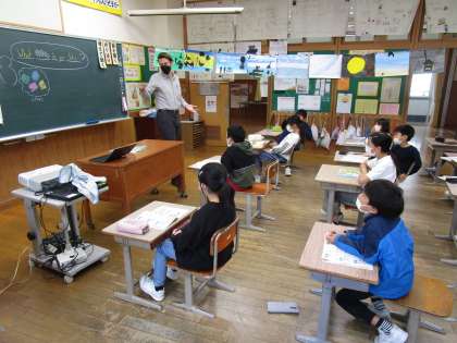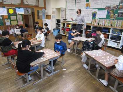 ALTと一緒に楽しく学習しました。好きな色を英語で伝えることができました。ゲームを通して英語に親しんでいます。