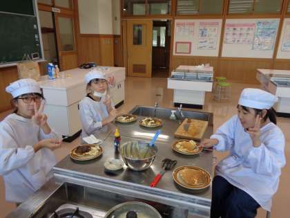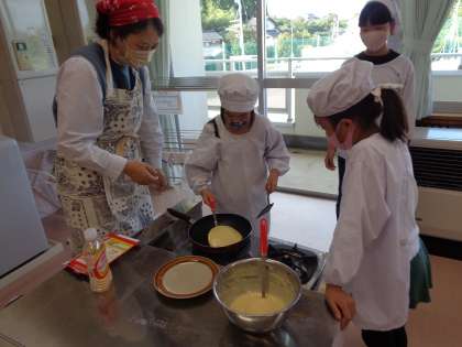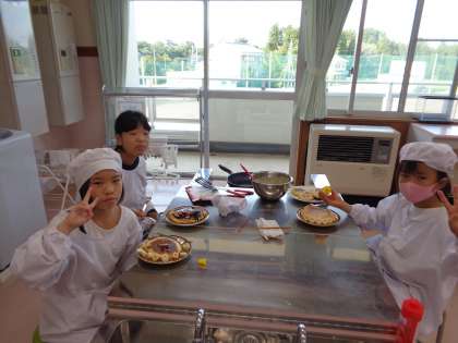 創作クラブでは、パンケーキ作りをしました。他学年の友達と協力し、おいしく作ることができました。