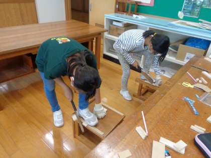 図画工作科では、今日から「ギコギコトントンクリエイター」の学習が始まりました。安全に気を付けながら、上手にのこぎりを使っていました。想像以上にテンポ良く進んでいてびっくりです。