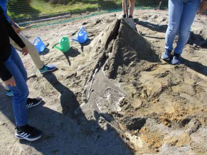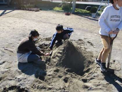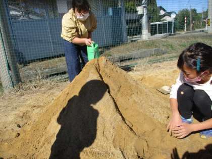 5年生は今日、理科の学習で、流れる水のはたらきについて実験しました。自分たちでつくった山に水を流し、浸食、運搬、体積の三つのはたらきを観察しました。「こんなに削れるとは思わなかった」と、流れる水の力に驚いていました。