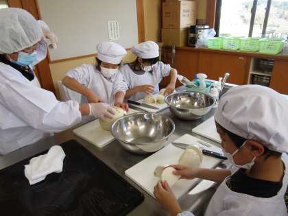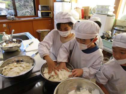約3か月の間、育ててきた大かぶを収穫しました。様々な大きさがありましたが、たくさんの大かぶを収穫することができました。また、収穫した大かぶを使って甘酢漬けをつくります。音川加工の方に教えていただきながら、下ごしらえをしました。明日はいよいよ味付けをしていきます。