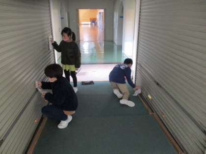 総合的な学習の時間に「音川小学校をよりよくする活動」をしています。今日は、「廊下を歩こうチーム」が校内に折り鶴を設置しました。全校のみんなが折り鶴を踏まないよう廊下を歩いてほしい、という願いからです。