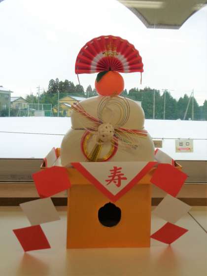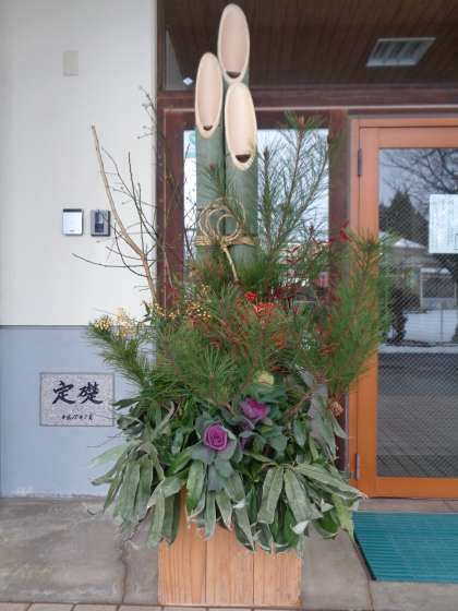 今年も、小学校の玄関には地域の方につくっていただいた門松が飾られました。2023年を迎えるに当たり、2023mmの高さに整えていただいた門松です。また、職員室内には鏡餅が飾られ、いよいよ新年を迎える準備が整いました。